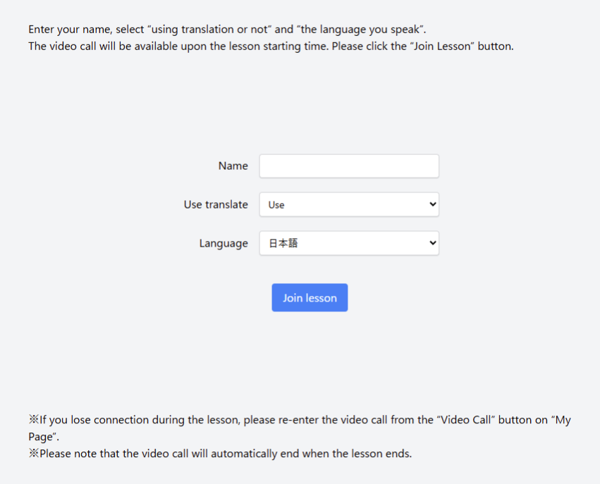 At Lesson time, open My Page and find “Video Call ” button.